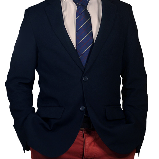 Beschikt over blind borstzakje, drie binnenzakjes waarvan 1 met knoop, en is voorzien van dubbele split.